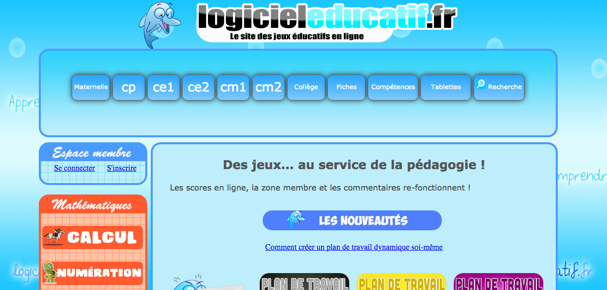 Des jeux éducatifs en ligne de la maternelle au collège en français et en mathématiques et d'autres domaines.